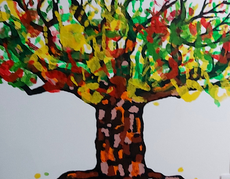 The students presented the residents with a painting they had made with the whole class and the residents, in return gave each student an autumn card which they had made.