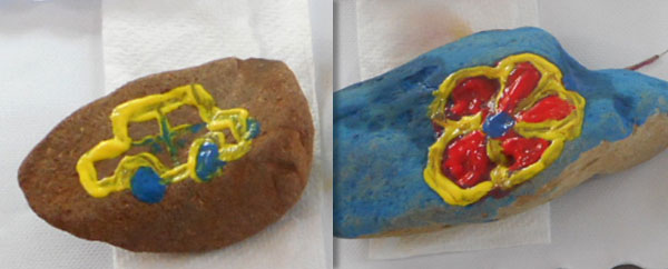 These rocks will be passed onto the Brownies who will distribute them throughout the Mountain and involve the tourists and locals in finding them and drawing attention to Roslyn Lodge through the Facebook page. Pictured is resident Enid Bonsall painting the first batch of rocks created today.